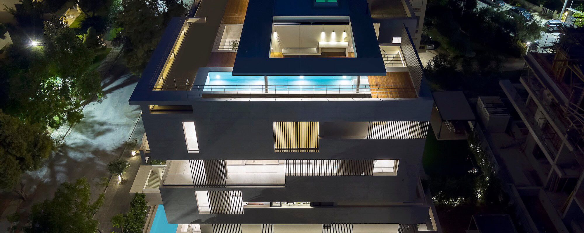The installation includes smart controls and touchscreens, which allow full control of lighting, shading, temperature and operating scenarios in each apartment, motion detectors and sensors, for the automated activation of lighting and the enhancement of safety in public and private spaces and electrical panel materials fully compatible with the KNX protocol.